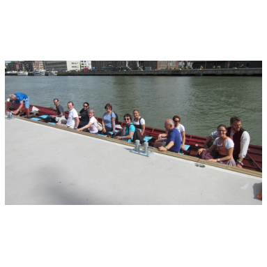Das zweite Erlebnis war die gemeinsame Kirchbootruderfahrt der Lechler. Bei der Buchung in München hatte keiner von uns auch nur im Traum vermutet, dass man da selbst rudert. Ich hatte nicht einmal die Ruderboote, die so ab und an am Kanal vorbeischipperten, in Verbindung mit unserer Unternehmung gebracht. Tja und dann standen wir am Kai und da lag nur ein Ruderboot für 14 Ruderer im Wasser. Zum Glück Richtung flussabwärts, muss man sagen. Wir haben sehr viel gelacht und uns sehr stolz gefühlt, als wir nach unfallfreier Fahrt am Ziel ankamen und ein Kaltgetränk gemeinsam zu uns nahmen.