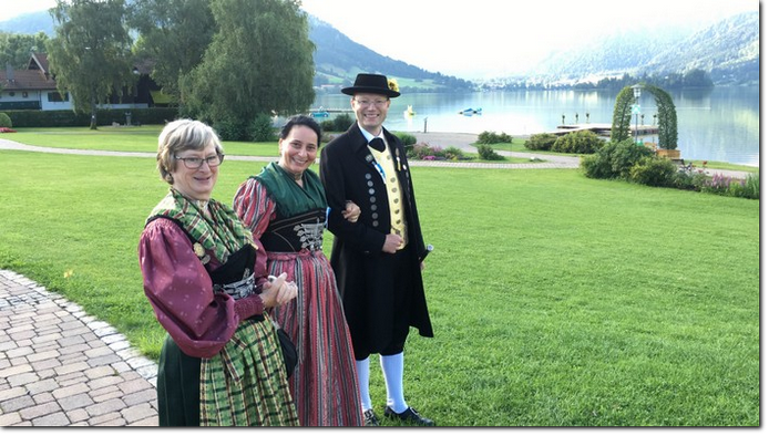 Die originalen Nachbauten der Plätten, den historischen Booten aus Lärchenholz, sind dabei festlich geschmückt. Von Fischhausen aus fuhren sie etwa eine Stunde am Ostufer entlang hinüber nach Schliersee, wo sie am Kurpark mit Glockenläuten, Standkonzert und Böllerschützen erwartet wurden. Befreundete Trachtengruppen aus ganz Oberbayern fanden sich hier ebenfalls ein und boten eine feierliche Szenerie.
