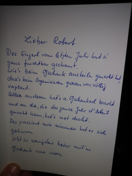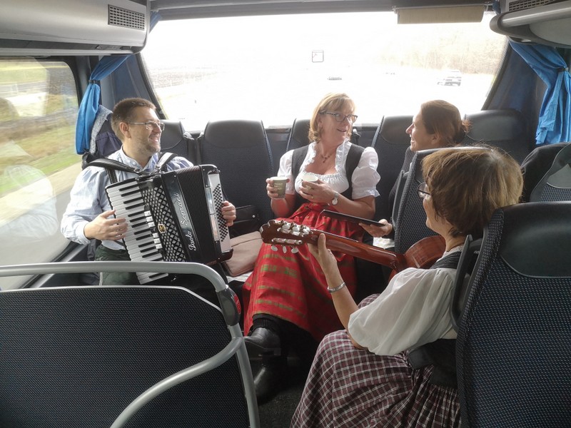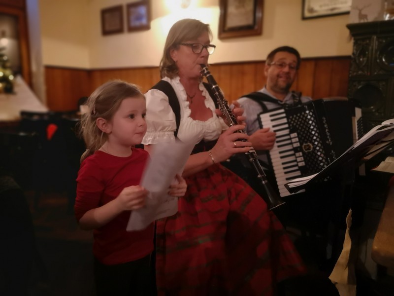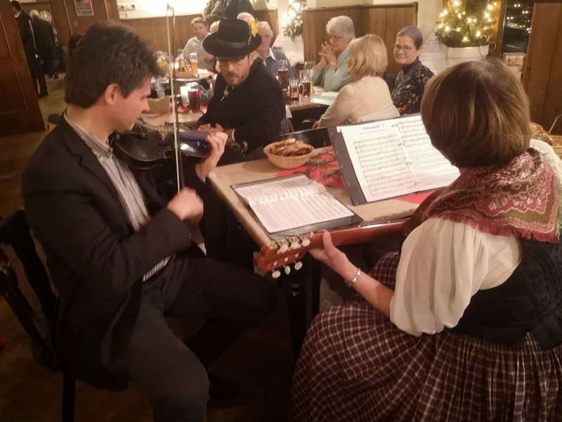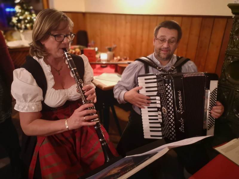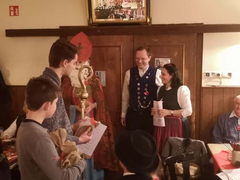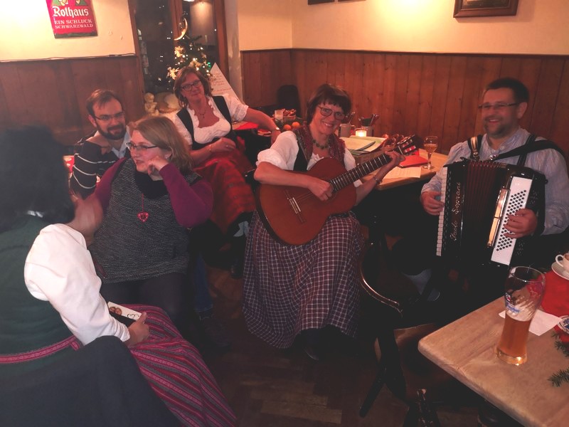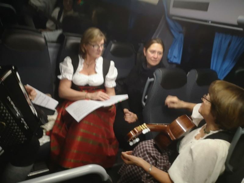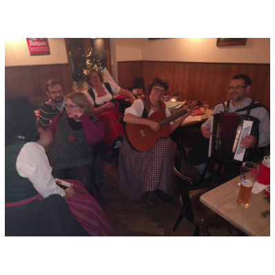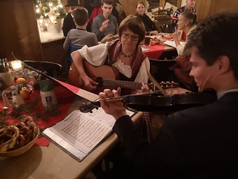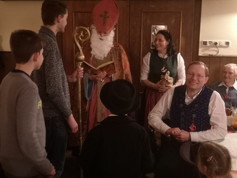Am ersten Adventsamstag um 10 Uhr starteten wir per Bus ins Trachtenkulturzentrum Holzhausen. Schon auf der Fahrt stimmten uns Martin, Margret, Christl und Daniela mit weihnachtlicher Musik auf den Tag ein. Zwischen den Standerln, bei den Federkielstickern, Holzbearbeitern, Bastlern, Schnapsbrennern, vielen anderen Ausstellern, sowie bei weihnachtlichen Theaterdarbietungen oder gelesenen Märchen, wurden uns die fünf Stunden Aufenhalt nicht lange. Rechtzeitig zur Weihnachtsfeier setzte uns der Bus um 16:30 Uhr vor dem Truderinger Wirtshaus ab, das uns festlich geschmückt empfing und feinstes Essen servierte bis der Nikolaus kam. Am Schluss hatte ein ziemlich großer harter Kern Lechler mehr als 12 Stunden miteinander gesungen, gegessen, geratscht und gelacht - auf jeden Fall eine sehr schöne entspannte Zeit miteinander verbracht.