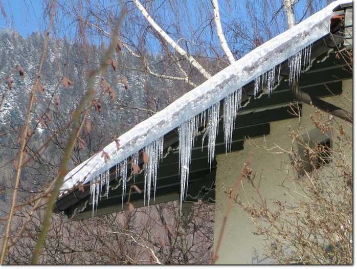 Um 10 nach 10 haben wir nach einer unterhaltsamen Fahrt inmitten von einem Haufen Schifahrer unser Ziel erreicht. Bei strahlendem Sonnenschein führt uns Otto über kleine Wegerl und Staffeln an am Bacherl entlang vom Bahnhof hinunter zum Schätz. Drei Leut sind schon in Laden, jetzt kommen noch mal sechse dazua: jetz is er bummvoll!