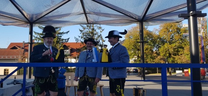 fand die Landesverbandstagung des Bayerischen Trachtenverbandes in Unterföhring statt. Der Trachtengau München und Umgebung war Ausrichter, weshalb auch wir Lechler bei der Planung und Gestaltung gefragt waren. Im Vorfeld entstanden die wunderschönen Münchner Kindl als Tischschmuck für die Vereinsvertreter oder die Sackerl für die Krautköpfe, die jeder Besucher als Abschiedsgeschenk mitbekam. 60 Kuchen waren von fleißigen Händen gebacken und verkauft worden, die Mittagessen mussten zügig verteilt und wieder abgetragen werden, und das Bürgerhaus in Unterföhrung musste wunderschön mit Blumen dekoriert werden, damit die Kulisse für die Redner, für die Tanzauftritte am Heimatabend und auch für den festlichen Gottesdienst am Sonntag in der nüchternen Räumlichkeit prächtige Bilder liefern konnte.