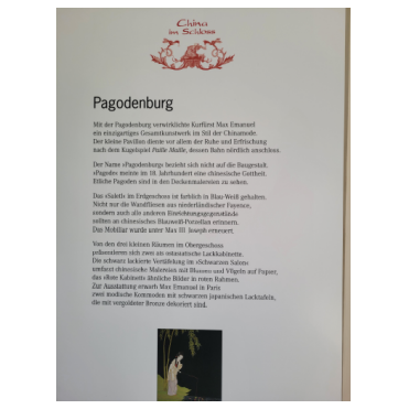 Die achteckige, zweistöckige Pagodenburg (erbaut 1716-19 von Josef Effner) gilt als herausragendes Zeugnis der Chinamode im Europa des 18. Jahrhunderts. Der am kleinen See errichtete Teepavillon wurde von den hohen Herrschaften für Festlichkeiten und zum Ausruhen nach dem Mailspiel genutzt. Das Mailspiel oder Kugelschlagen ist eine dem Golf verwandte Kugelsportart aus dem Spätmittelalter, das im nördlichen Mitteleuropa von Adeligen gespielt wurde.Mit der Badenburg (erbaut 1718-21 von Josef Effner) steht im Nymphenburger Schlosspark das erste beheizbare Hallenbad Europas (nach den Thermen der Römerzeit). Neben dem großzügigen Baderaum, der sich über Keller und Erdgeschoß erstreckt, befinden sich in der Badenburg ein kurfürstliches Appartement mit Vorzimmer, Schlafzimmer, Kabinett und Garderobe und ein großer Festsaal mit schwerem Marmorboden, aufwendigen Stuckaturen und Gewölbefresco. Im Schlosspark gibt es noch etliche weitere Badestellen, denn die Wittelsbacher waren für ihre Badevergnügen bekannt.