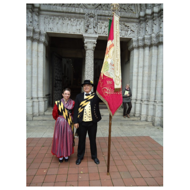 Gemeinsam mit Fahnenabordnungen verschiedener Vereinigungen bot unsere Fahne ein schönes Bild um den Altar.