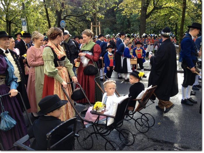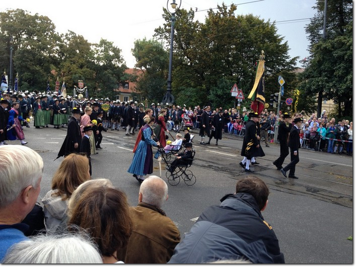 Ein absoluter Publikumsmagnet sind natürlich unsere jungen Lechler, die teils zu Fuß, teils auch noch im historischen Kinderwagen, die Gruppe anführen.
