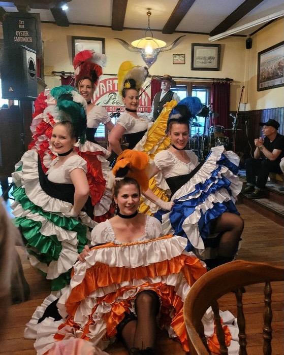 Essen und Vergnügen kamen beim Fest auch nicht zu kurz. Das profimäßig gekochte Texas Style Barbecue schmeckte hervorragend. Für die vielen unterschiedlichen Kuchen am Nachmittag war gar kein Platz mehr in meinem Magen. Einen Höhepunkt setzten gegen Ende der Feierlichkeiten die Cancan-Tänzerinnen, die im Saloon ihre Rüschenröcke schwangen, als wären sie einem Cowboyfilm entsprungen.