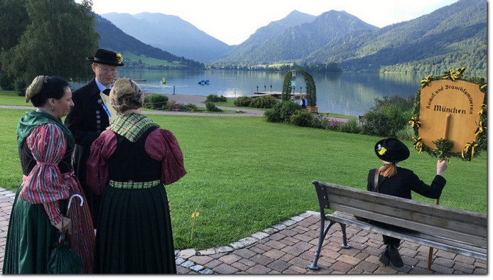Die originalen Nachbauten der Plätten, den historischen Booten aus Lärchenholz, sind dabei festlich geschmückt. Von Fischhausen aus fuhren sie etwa eine Stunde am Ostufer entlang hinüber nach Schliersee, wo sie am Kurpark mit Glockenläuten, Standkonzert und Böllerschützen erwartet wurden. Befreundete Trachtengruppen aus ganz Oberbayern fanden sich hier ebenfalls ein und boten eine feierliche Szenerie.