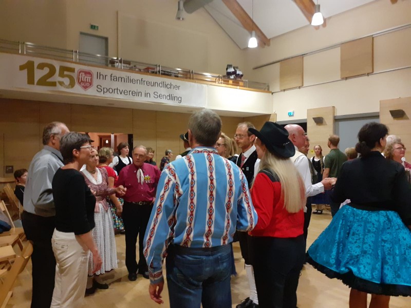 Der Verein "Erste Altschlesische Heimatspiel- und Trachtenzunft Rübezahls Zwerge München" , bekannt als "Die Zwerge" feierten am 7. September 2019 ein rauschendes Fest in den Räumlichkeiten der Freien Turnerschaft München Süd e.V. Jeder Lechler, der der herzlichen Einladung von Sigi und Maria nicht gefolgt ist, hat etwas versäumt, das kann ich euch sagen. Es wurden keine langen Reden geschwungen, sondern von 14 Uhr bis 22 Uhr wurde gegessen, gelacht und getanzt. Gut waren eure selbstgebackenen Kuchen und die drei gegrillten Spanferkel. Schön war's ! Bunt war's. Und gelernt haben wir auch noch was: Beim Tanz der Kulturen erlernten wir eine Linedancesequenz und einige der 68 auf der Welt überall gleich getanzten Squaredancefiguren.