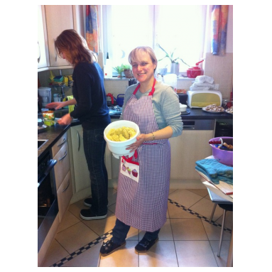 Keine 5 Minuten später kam auch Bine mit den restlichen Kids an und nach kurzer Begrüßung legten wir auch schon los. Dank Tatjanas hervorragender Vorbereitung konnten wir sofort mit der ersten Fuhre Plätzchen beginnen. Und damit begann die große Teig- und Mehlschlacht! Wie ihr an der Weihnachtsfeier sehen konntet sind trotz enormem Teigverlust (sabber, schleck, mampf) und anfänglichen Kohleplätzchen doch noch genügend für euch übrig geblieben. Zum Glück wird eben auch dem stabilsten Magen irgendwann mal schlecht! Am Abend hat Silke dann noch den Kochlöffel geschwungen und unsre vollkommen übersüßten Mägen mit den traditionellen Spinatspätzle versorgt. Nach einer Runde Kinder bespaßen am Spielplatz und Chaosbeseitigung in der Küche, gings für die Kleinsten ins Bett und für uns nach Hause.