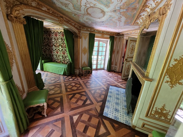 Bei der Amalienburg (erbaut 1734-39 von F.Cuvilliés und J.B.Zimmermann) handelt es sich um ein Jagdschlösschen, welches Kurfürst Karl Albrecht für seine jagdbegeisterte Gattin Amalia erbauen ließ. Im Eingangsbereich befinden sich darin Boxen für die Jagdhunde und nebenan in einem kleinen Zimmerchen eine Toilette. Es handelt sich dabei um ein Möbelstück, das man auch für eine normale Kommode mit Klappdeckel halten könnte und welches zur damaligen Zeit etwas absolut Neues, Extravagantes war. Der runde Spiegelsaal gilt als Höhepunkt des europäischen Rokoko. Für die Jagd diente das Dach als Hochsitz. Das Schlafzimmer und eine geräumige Küche ermöglichten der adeligen Gesellschaft das Wohnen und Feiern im Jagdschlösschen.