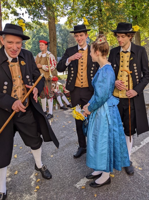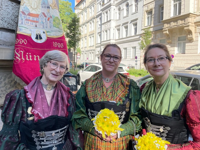 52 Lechler tapfer und zunehmend durstig den langen dicht mit Zuschauern gesäumten Weg zur Wiesn ins Fischer Vroni Zelt.