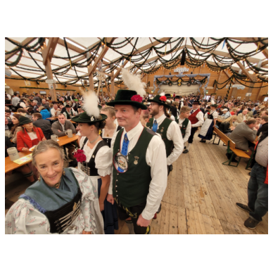 Wir hatten Nummer 4B und konnten deshalb die berittene Polizei an der Spitze des Trachenzuges fast vor uns sehen. Trotzdem wussten wir nicht, warum der Zug manchmal für längere Zeit stoppte. Das Wetter war ziemlich scheußlich, aber unsere Laune gut. Nach zwei Jahren Pause waren die Trachtler, das Tschingtarassabumm, die klingelnden Pferdegespanne, die Geräusche von Geisterbahn und Achterbahn, der Ochs in der Ochsenbraterei und die reschen Hendl einfach überwältigend schön. Die dichtgedrängten Menschenmassen im Bierzelt waren allerdings schon auch ein bisschen beängstigend und hatten bei einigen Zugteilnehmern auch die zu erwartende Folge, dass sie von Corona oder zumindest von einem Schnupfen heimgesucht wurden.