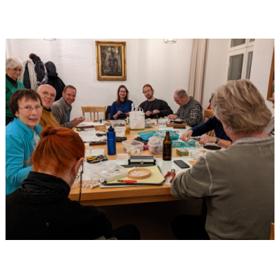 Heuer sind wir das erste Mal beim Adventbasar in unserer Heimatpfarrei St.Anna mit einem Verkaufstisch dabei gewesen. Unsere Draht- und Faltarbeiten fanden großen Anklang und so konnten wir die Pfarrei Zur Heiligen Familie in Gaza und einen Frauenworkshop der Franziskanermission in Bolivien mit dem Erlös aus unseren Verkäufen ein bisschen unterstützen.